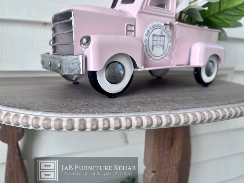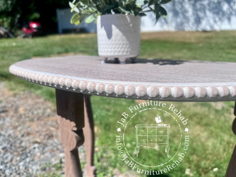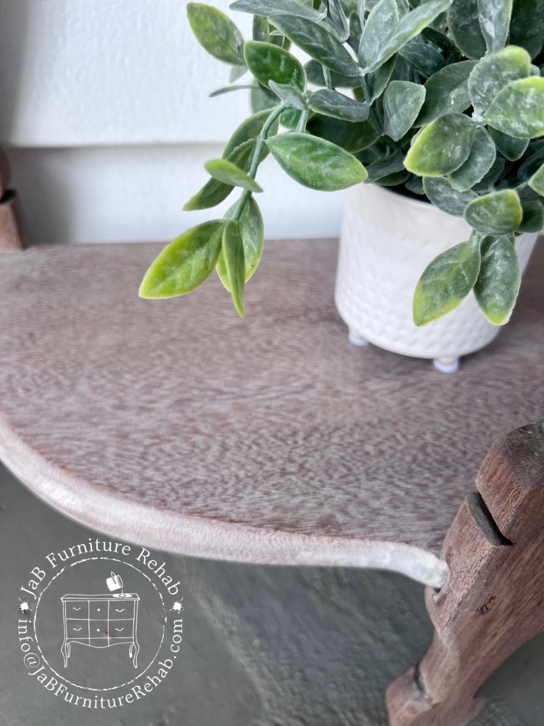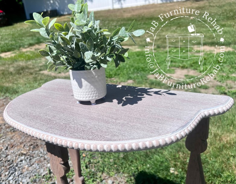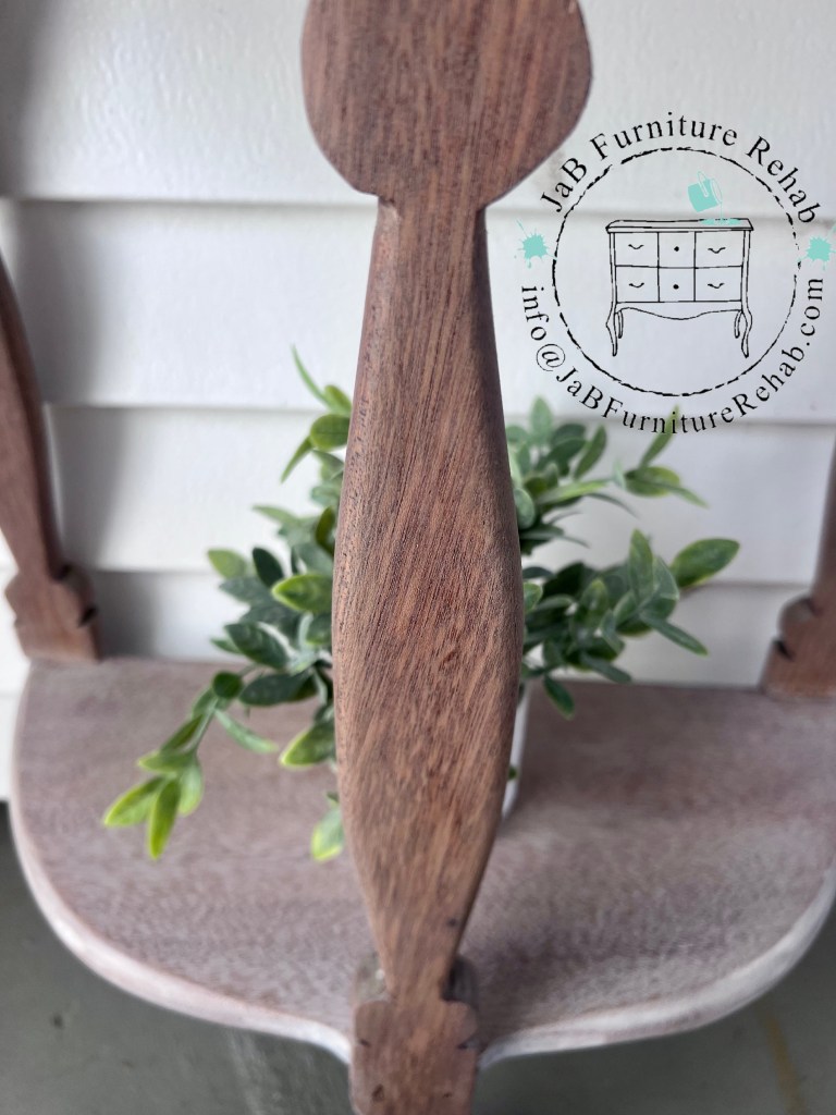 Adorable 2 shelf accent table refinished in a natural 2-tone wood style. (Color looks a bit pinky in the pics but is more neutral in person.)