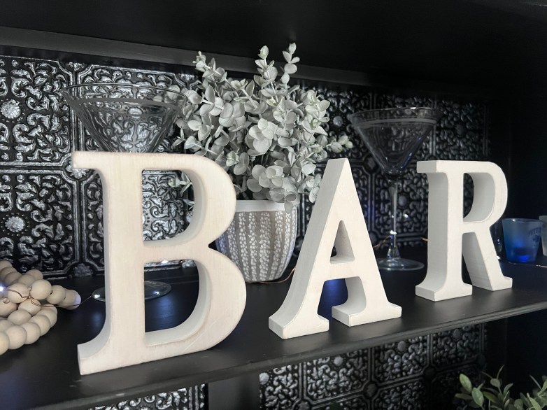 The backboard has raised wallpaper painted in black and gunmetal.