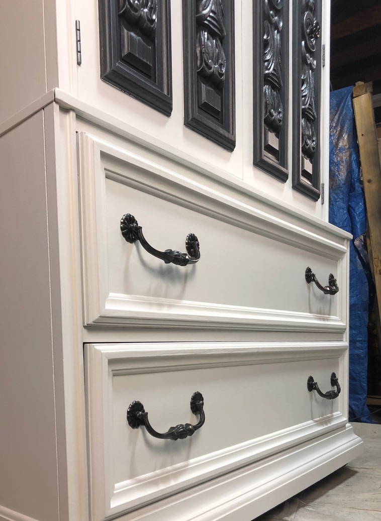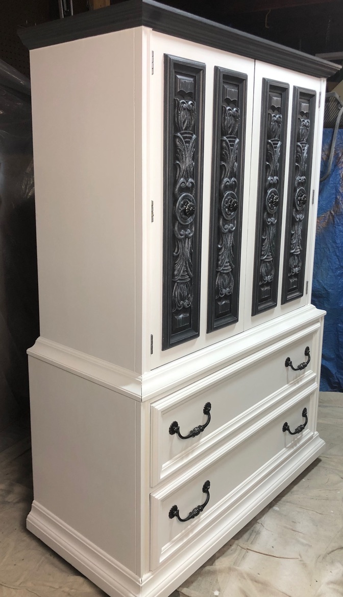 Julie has done several pieces for us and we are thrilled with the results!!! Three totally different styles of furniture for our bedroom and she listened to our color requests and made the “eclectic” style we wanted transforming everything in a coordinated and cohesive way-very talented and very creative!! Also, making sure all the pieces were delivered safely without scratches or breaks. Looking forward to seeing 2021 transformations!”